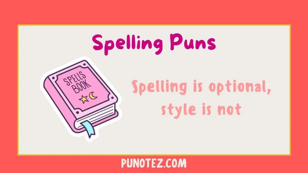 Spelling puns are jokes or wordplay based on misspelled words, letter confusion, or playful twists on spelling rules.